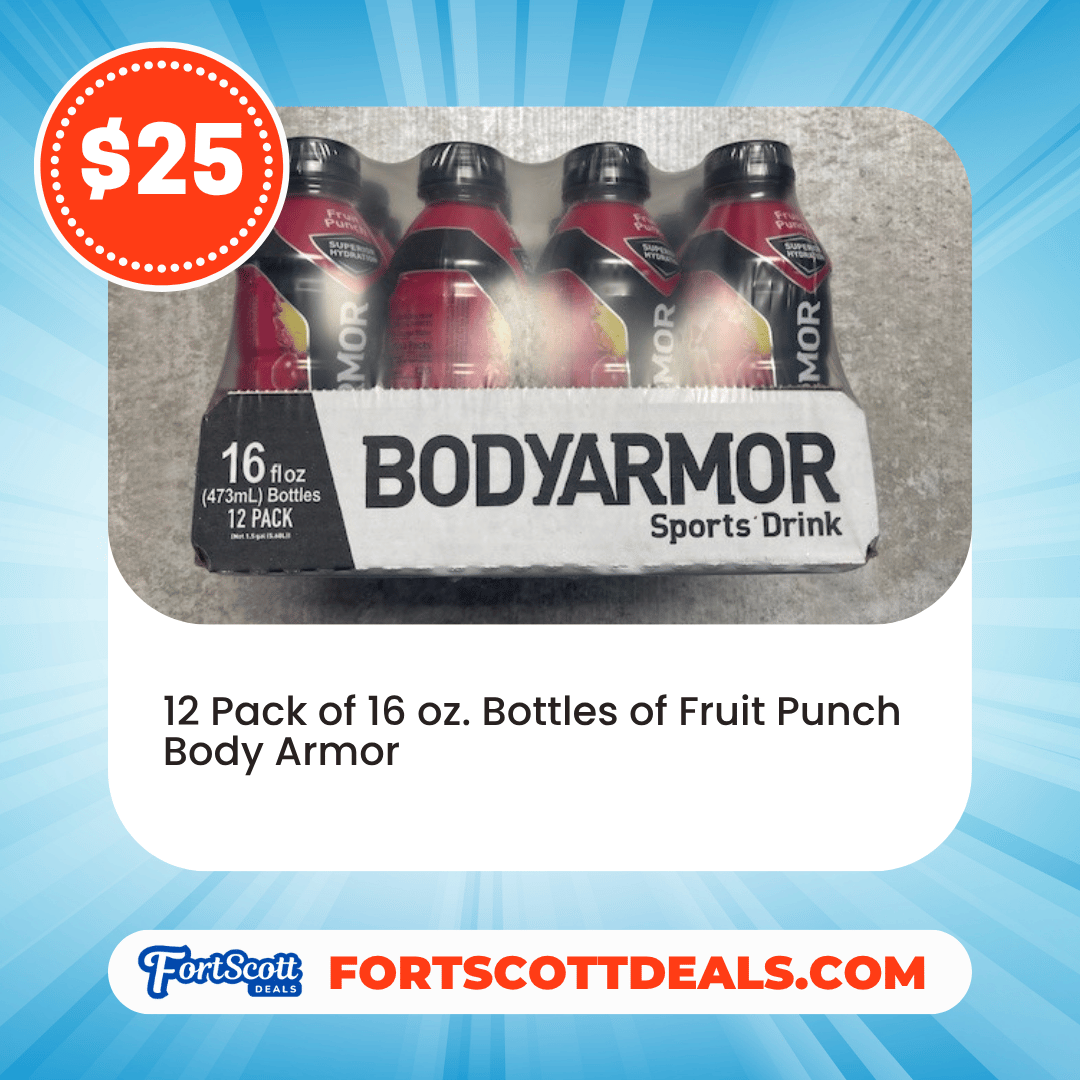 12 Pack of 16 oz. Bottles of Fruit Punch Body Armor