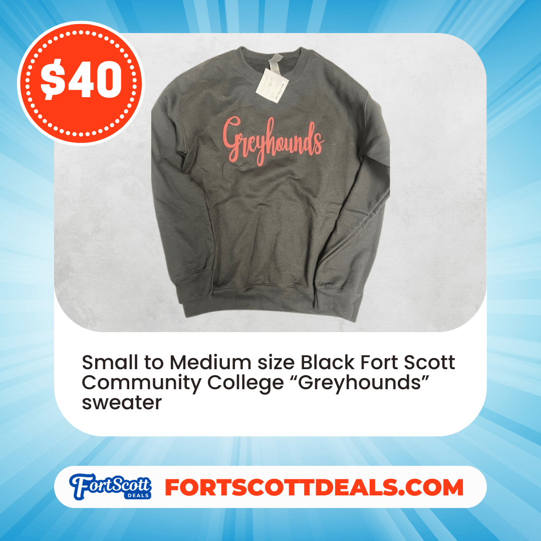 Small to Medium size Black Fort Scott Community College “Greyhounds” sweater