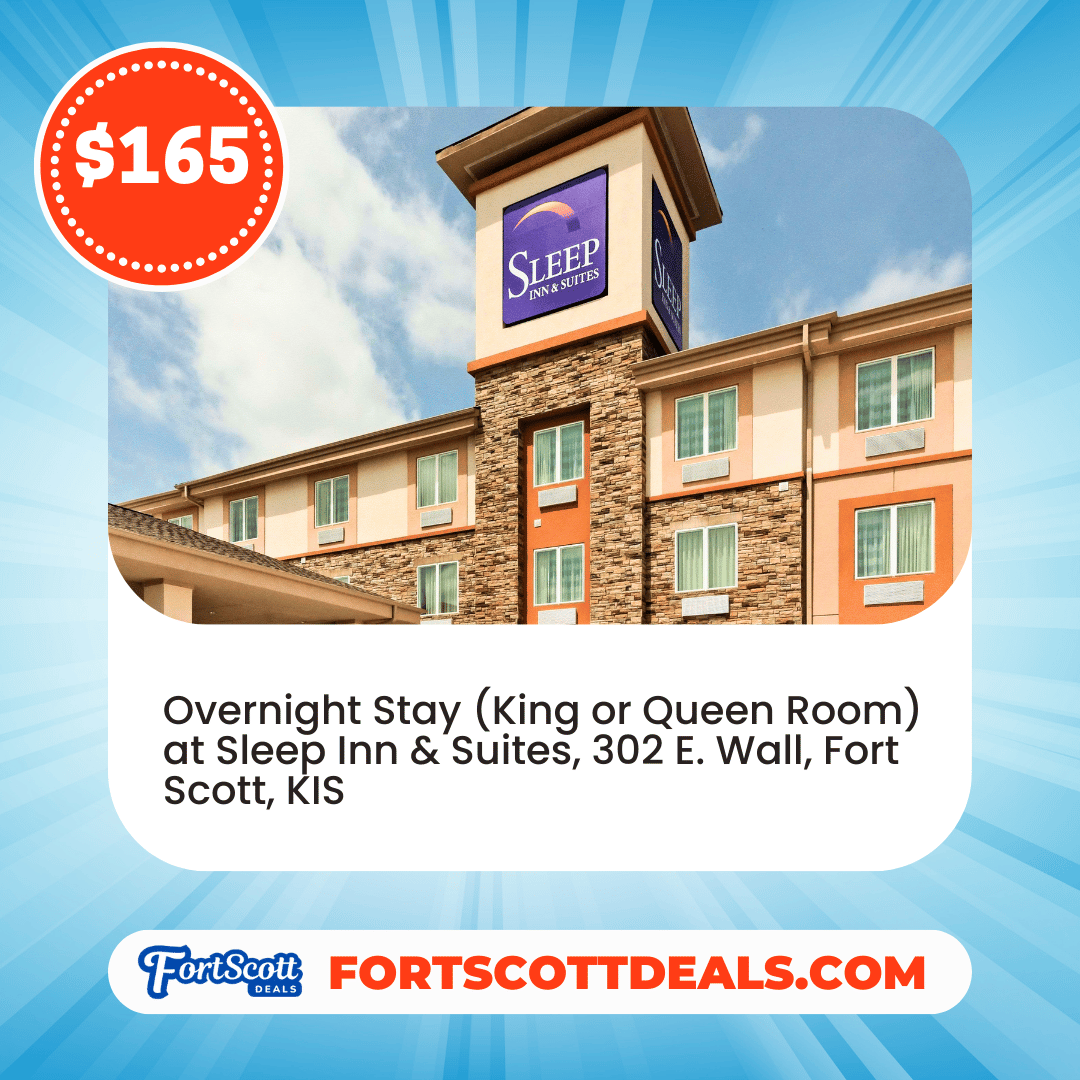 Overnight Stay (King or Queen Room) at Sleep Inn & Suites, 302 E. Wall, Fort Scott, KIS